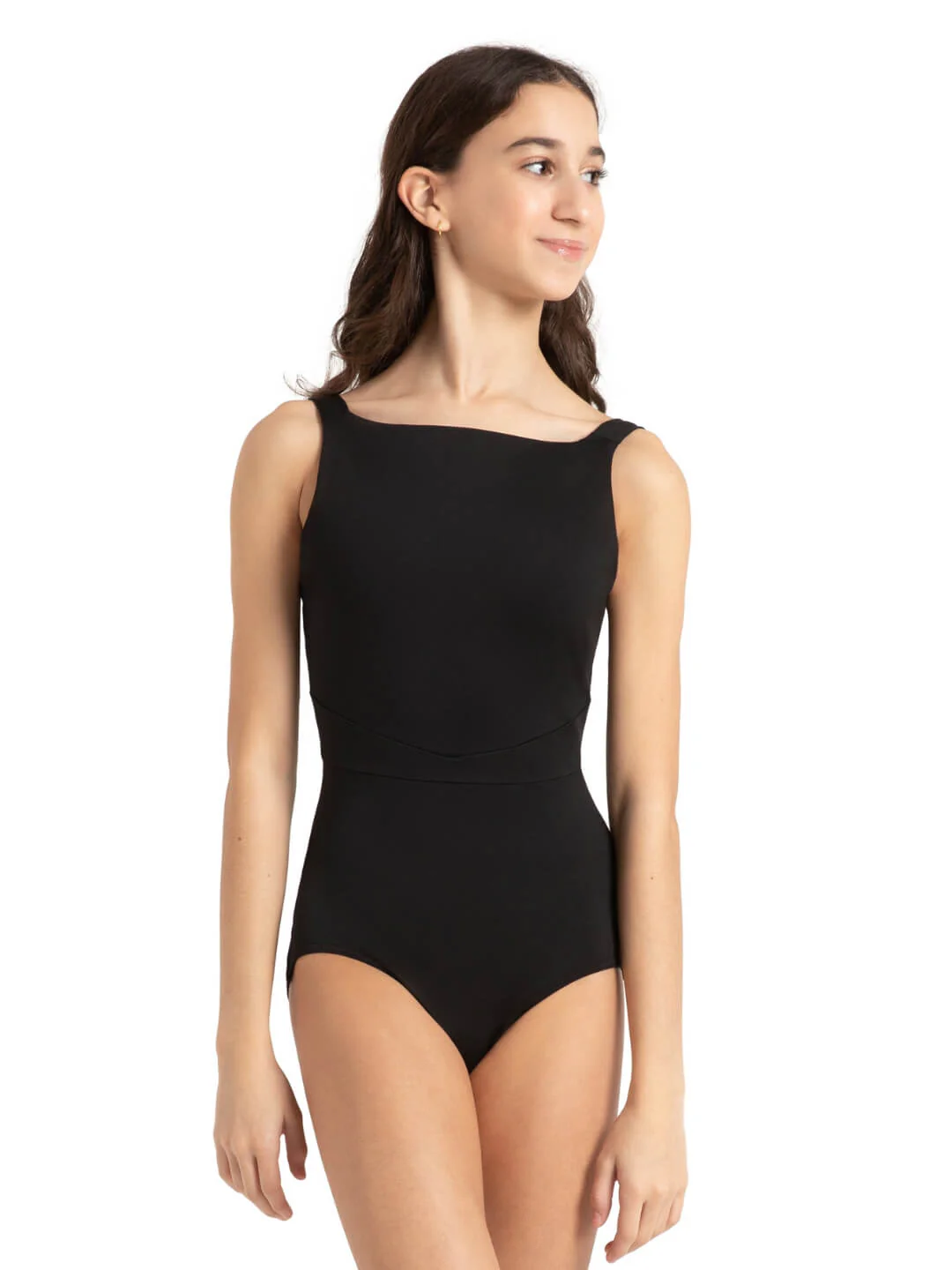 Show off your blossoming pirouettes in the Fleur Leotard! This stunning piece is the perfect pick for dancers who want to look and feel fabulous during rehearsals and performances. Crafted from a soft polyester and spandex blend, this wide-strap, fully front-lined camisole leotard stays put while you dance, while the boatneck and rounded v-back combo add a dash of sophistication to your style. It features a low empire waist panel detail, making this leotard a standout flower in the garden of dancewear.