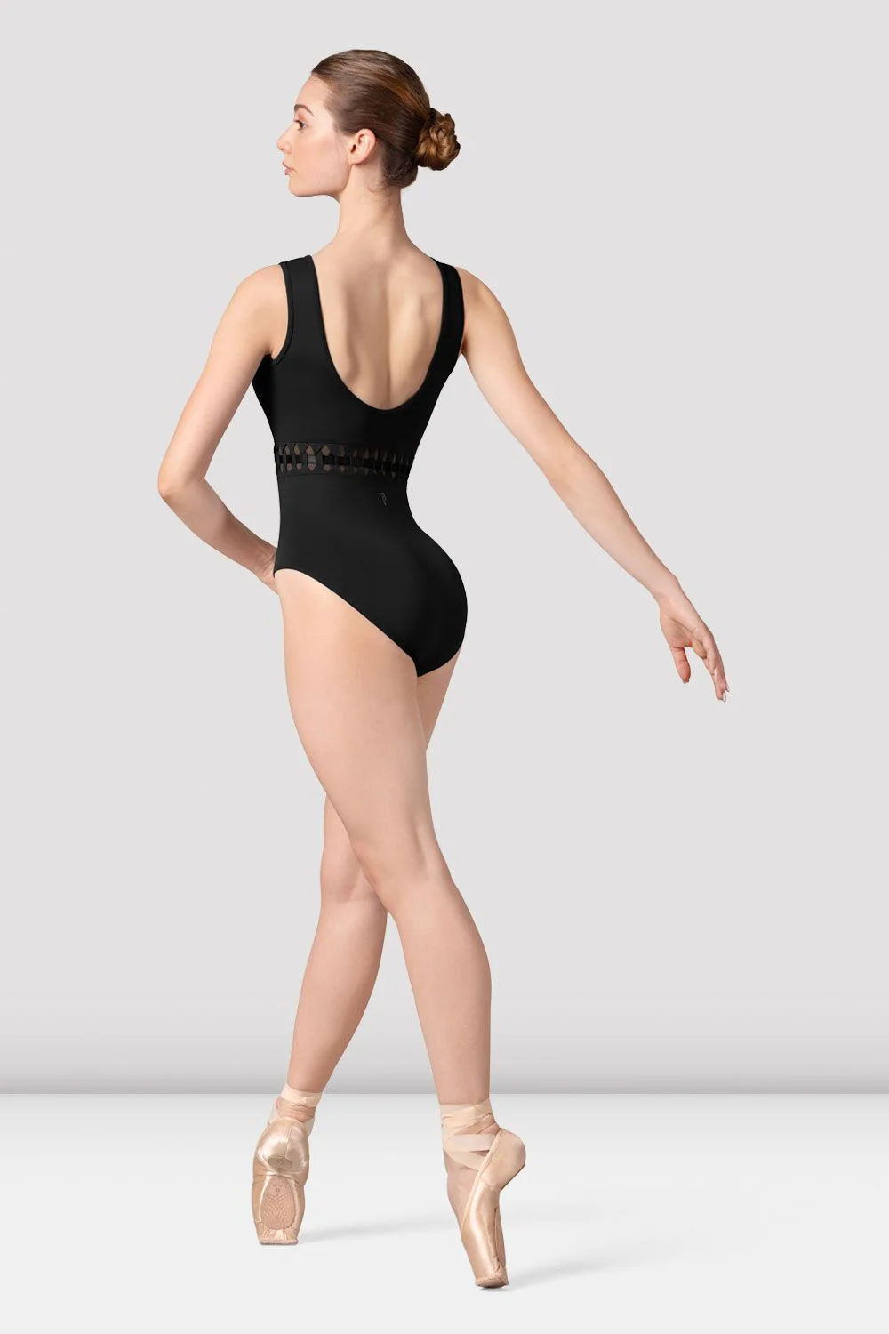 The Bloch Caitlin Scoop Back Leotard features a sophisticated high neck with exaggerated scoop back with an intricate twist panel detail.