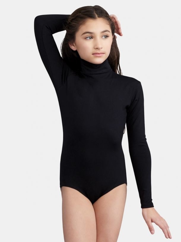 Coco Chanel knew best when she said, “Modesty is the highest elegance.” This reigns true when you watch your rising dancer in the Turtleneck Long Sleeve Leotard. This leo features a modest turtleneck and zippered back. Made of a nylon and spandex blend that is soft and resilient. Long sleeves will keep your favorite dancer warm on cold studio days.