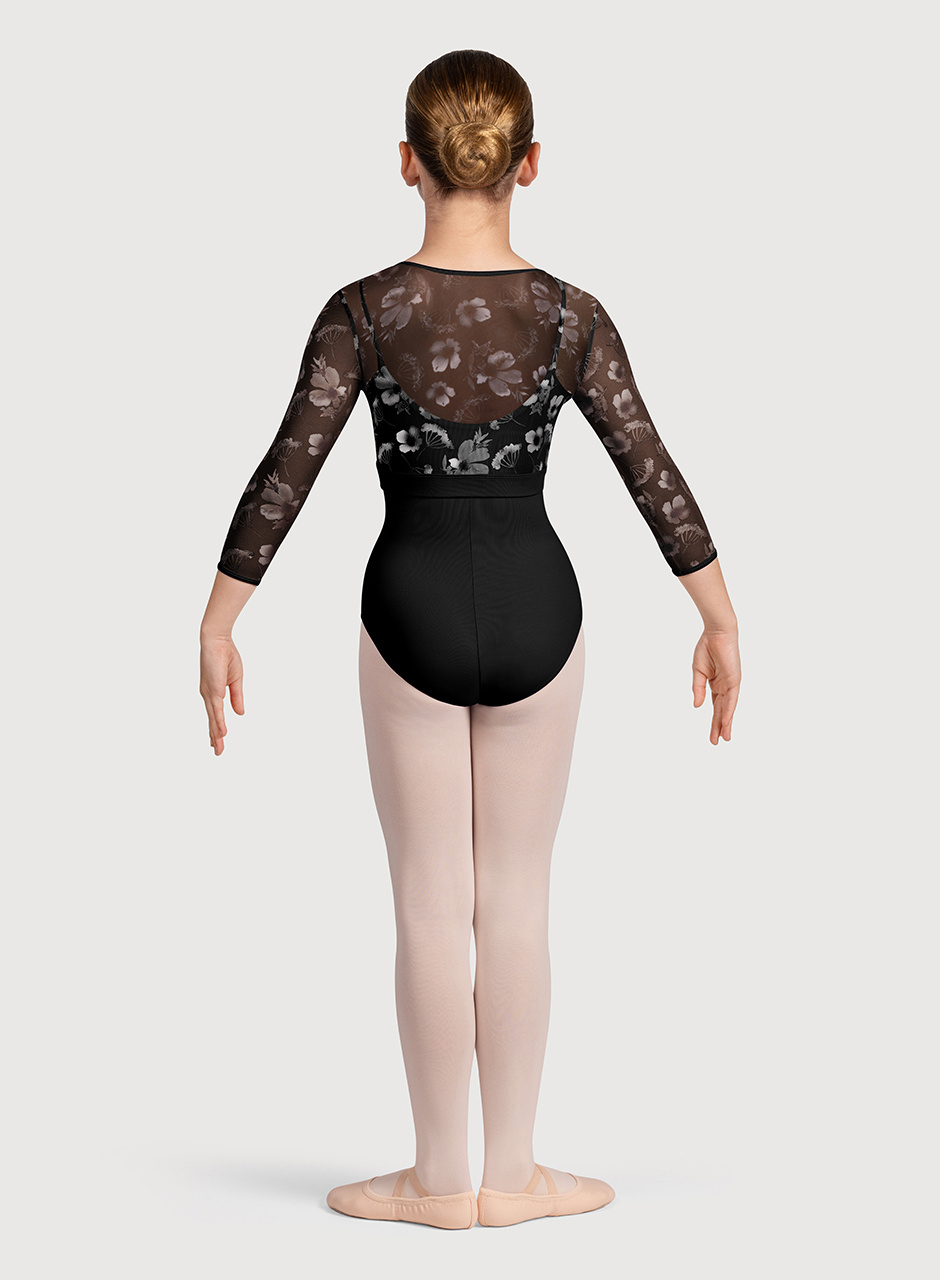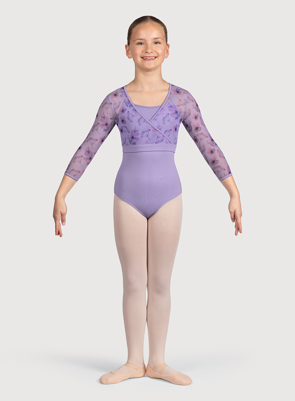 Fashionable and functional, this petal patterned mesh top from Bloch, with its flattering cross body wrap design and 3/4 length sleeves, is the perfect way to finish off any dance outfit. Pair with the Petal Crop Top, Petal Shorts, or your favourite leotard to complete the look!