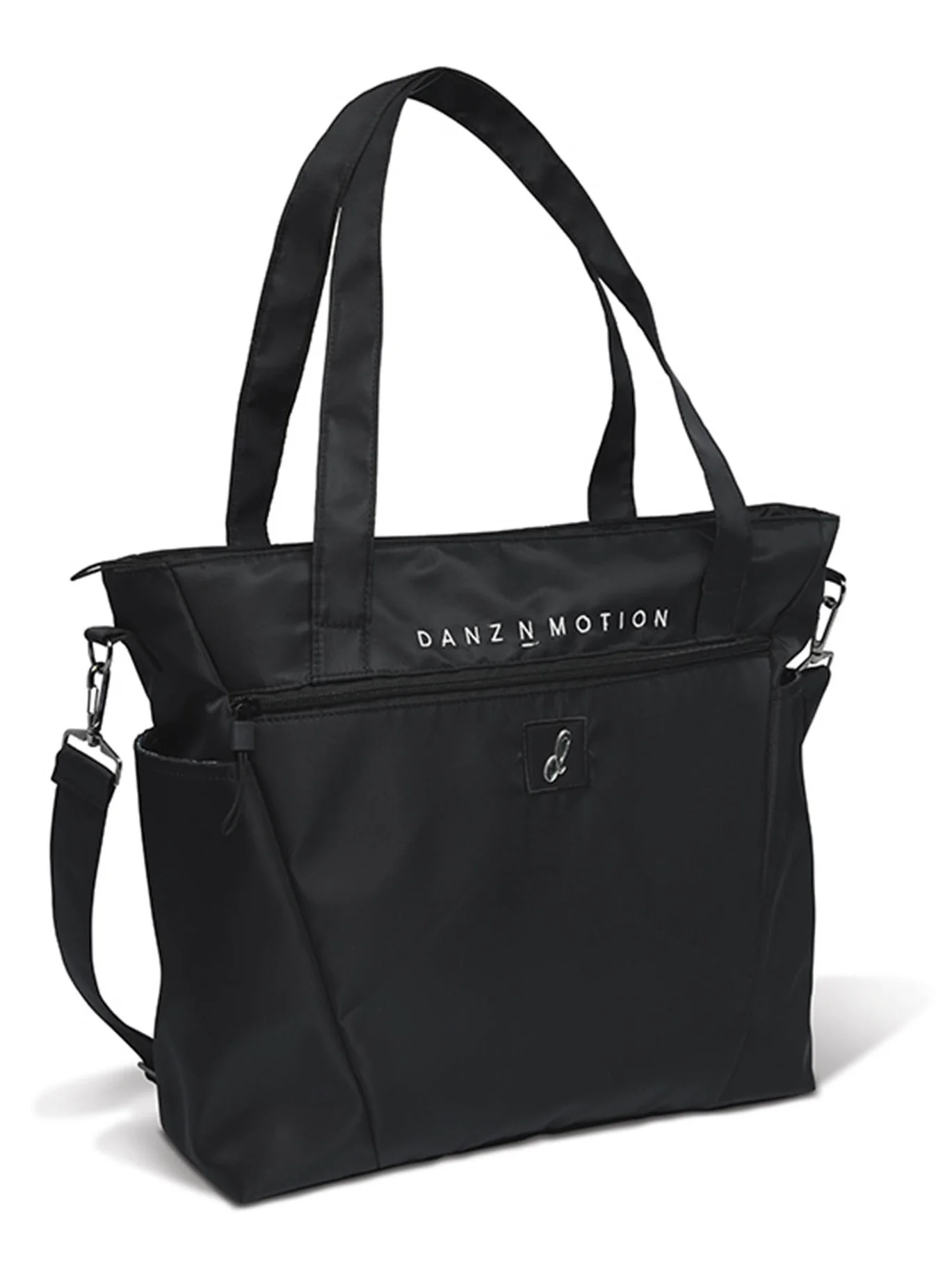 This studio bag is for the serious dancer who needs all their gear well organized and in one place! This ultimate dancer’s bag contains a total of 10 pockets, 3 exterior and 7 interior, to organize your all your dance needs for quick access. The inside compartment is fully lined with a gorgeous, printed fabric and has pockets designed to hold and organize multiple pointe shoes, bodywear and all your dance gear and accessories. The durable satin nylon exterior of this bag features a full-length zipper compartment along with two side pockets. Also included are double strapped carrying handles, an adjustable, removable shoulder strap, 3 lift pads on the bottom of the bag and the DANZNMOTION “d” logo icon. This bag wipes clean, lightweight and folds flat.