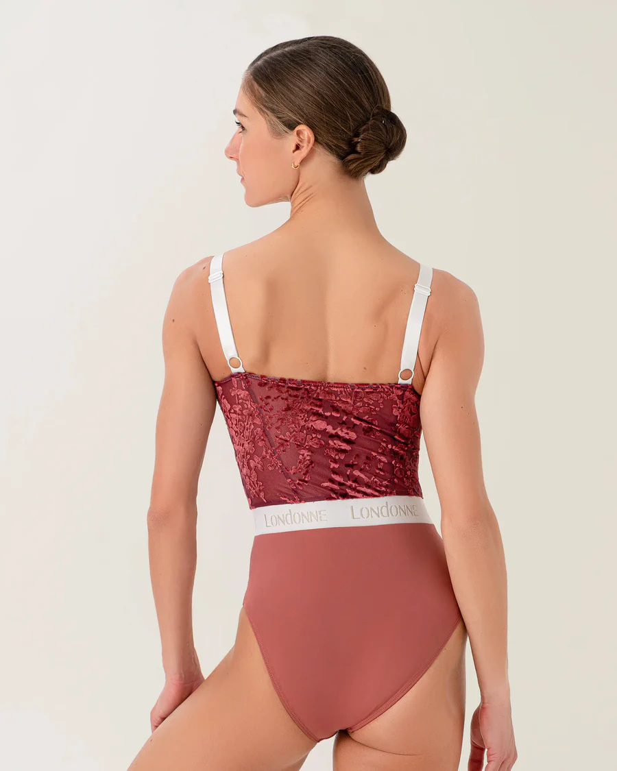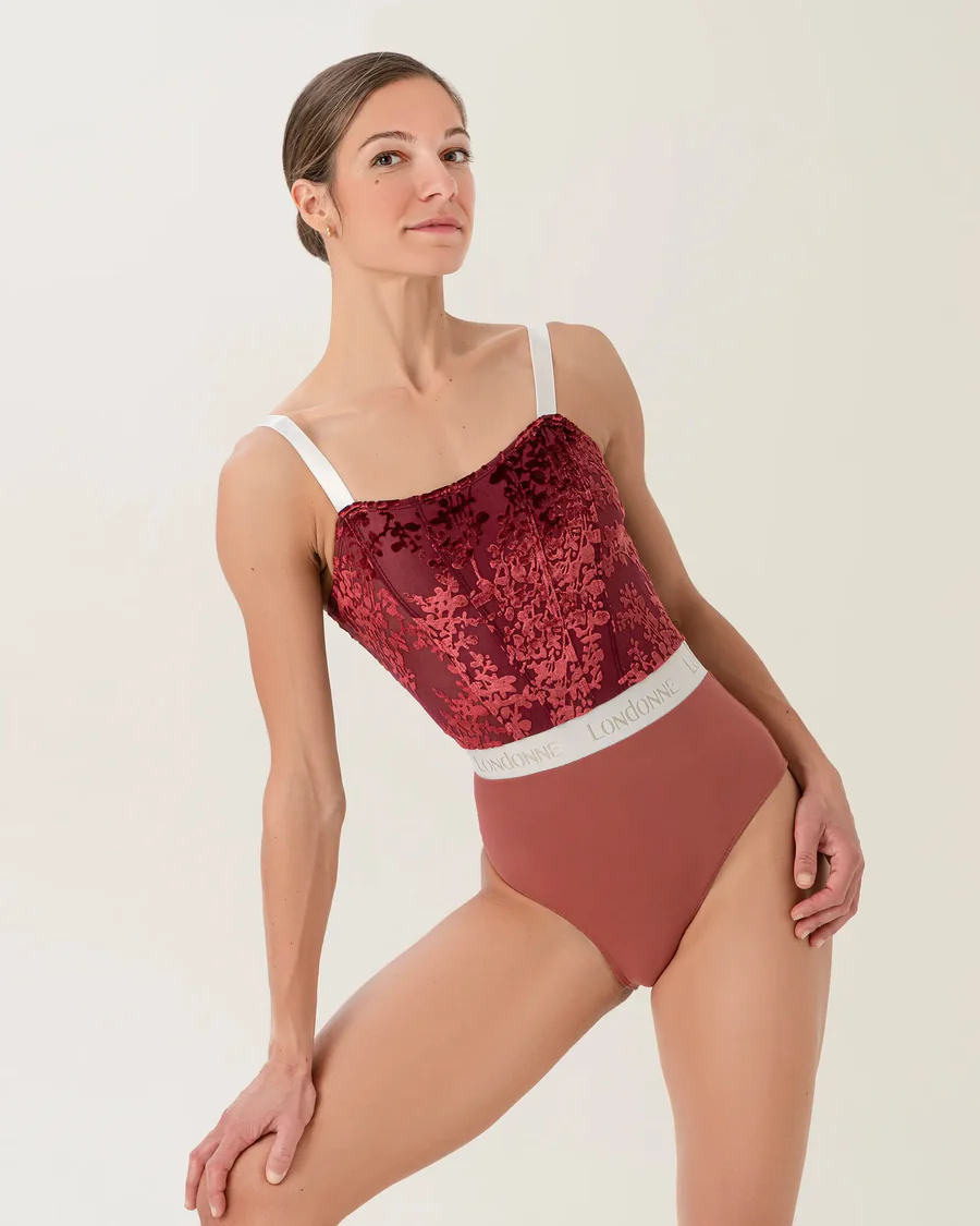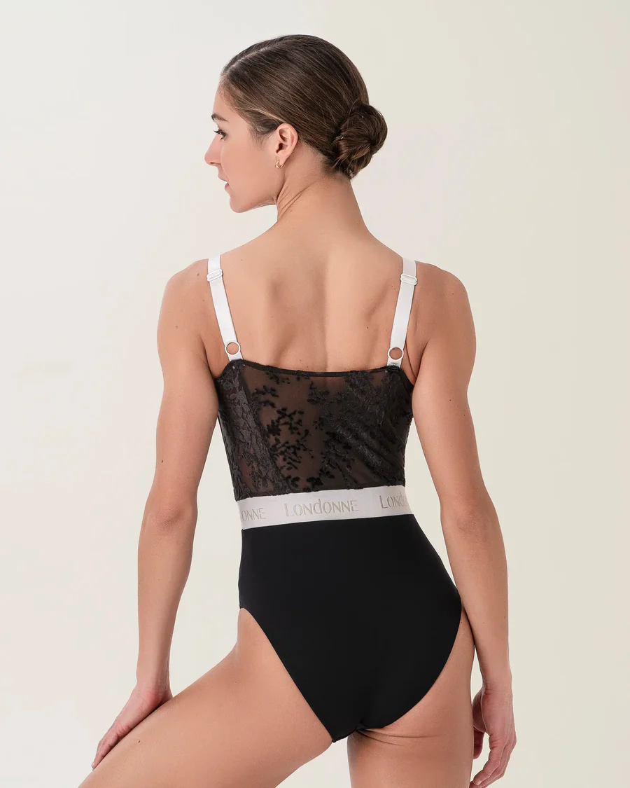 The Londonne Athena leotard introduces a bold new expression of refined strength. Crafted from Londonne’s signature black floral velvet, this camisole-style leotard combines elegance with a contemporary athletic edge. The wide, adjustable straps ensure personalized comfort and perfect support, while the signature Londonne elastic waistband defines the silhouette with confident precision.