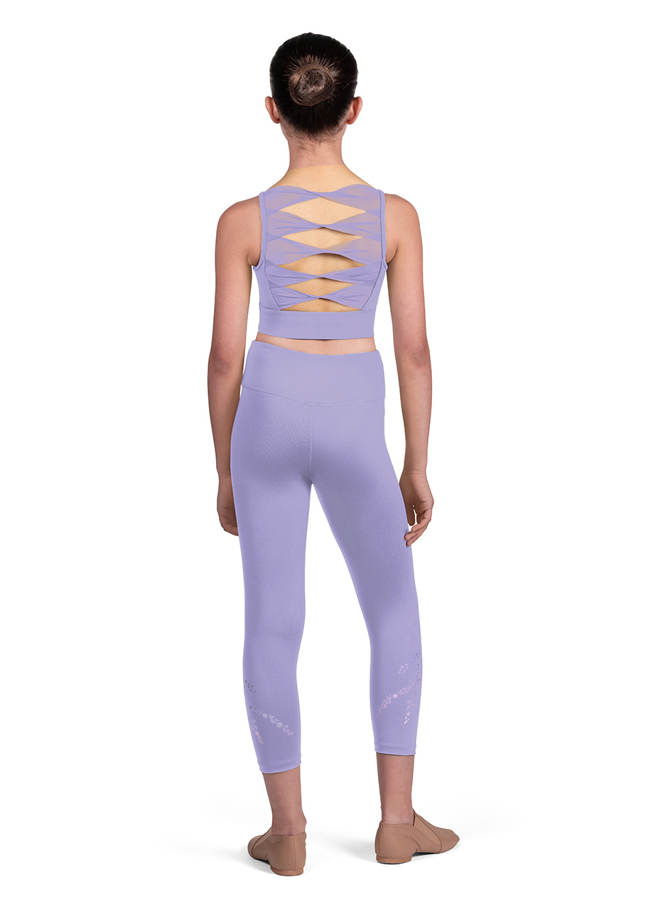 Your new favourite crop top is here! The Glow crop top from Mirella features a classic high neckline and wide band around the base, however the elegantly twisted mesh ladder back is the star of the show. Pair this with the Glow 7/8 Length Leggings to complete the look.