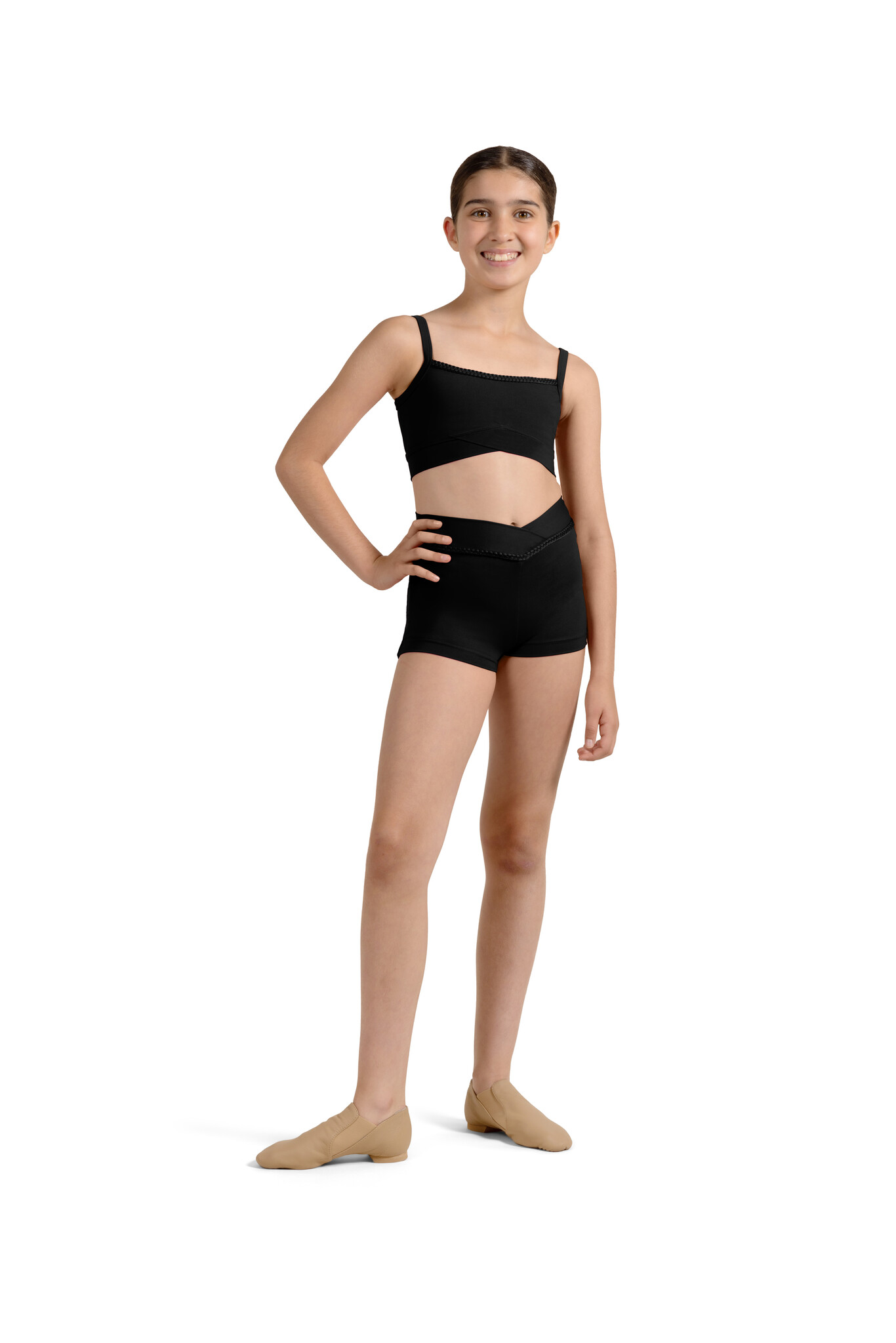 These shorts are the perfect choice for both in class and everyday wear. The V front and wide waistband back gives a flattering fit while staying in place during all types of movement both in and out of the studio.