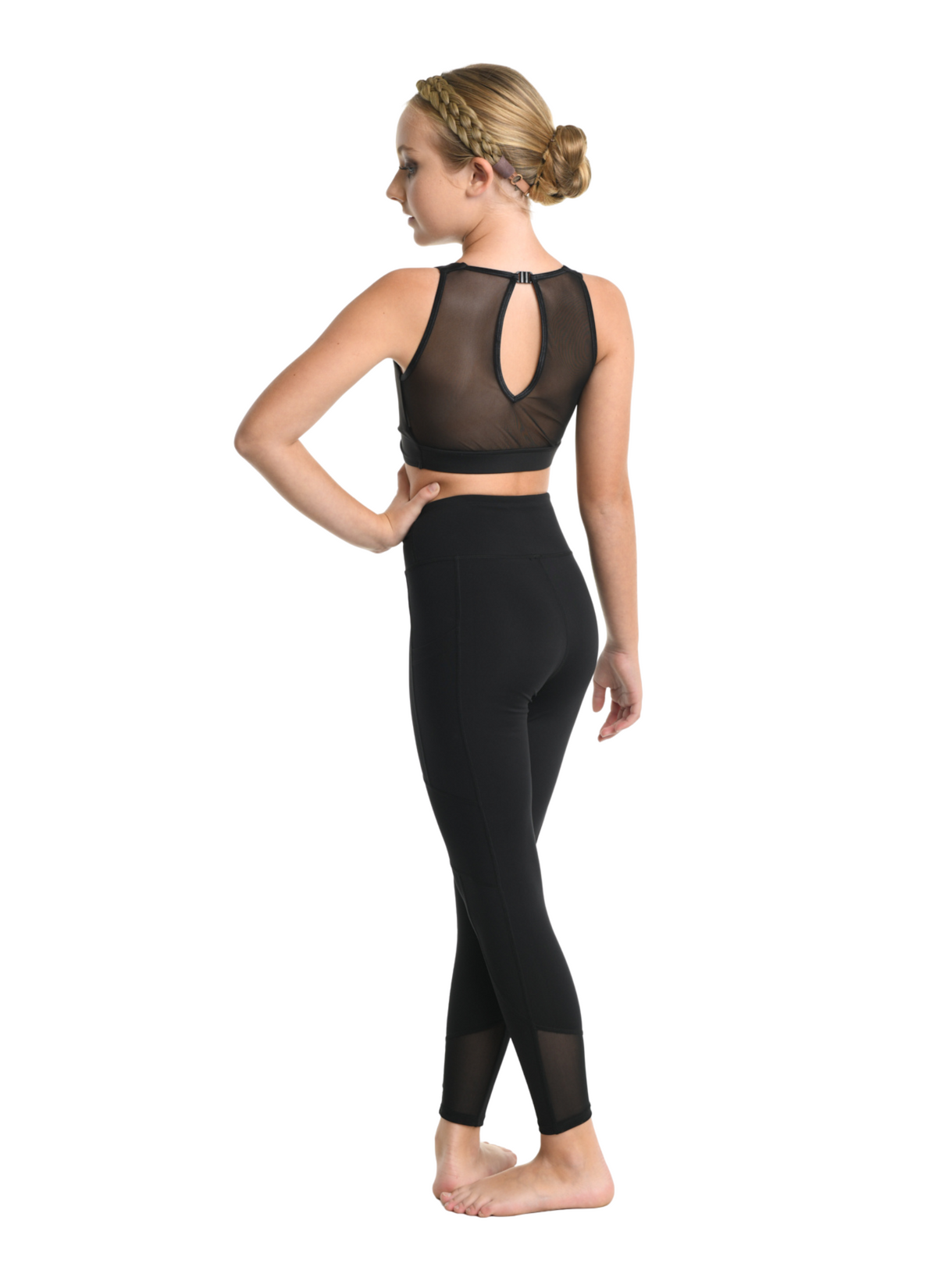 Cutaway tank bra with twist detail at front and sheer contrast at back. Girls fully front lined. Nylon/Spandex.