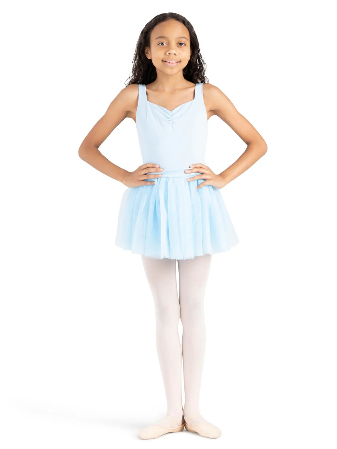 The Genevieve Dress is all about the glam! Made from a comfy blend of polyester and spandex, this dress features a sweetheart neckline with a pinch at the centre, flattering princess seams, and a sassy scoop back. Complete with a dyed-to-match lush velvet waist belt and dreamy attached three-layer tutu for that full-on princess vibe.
