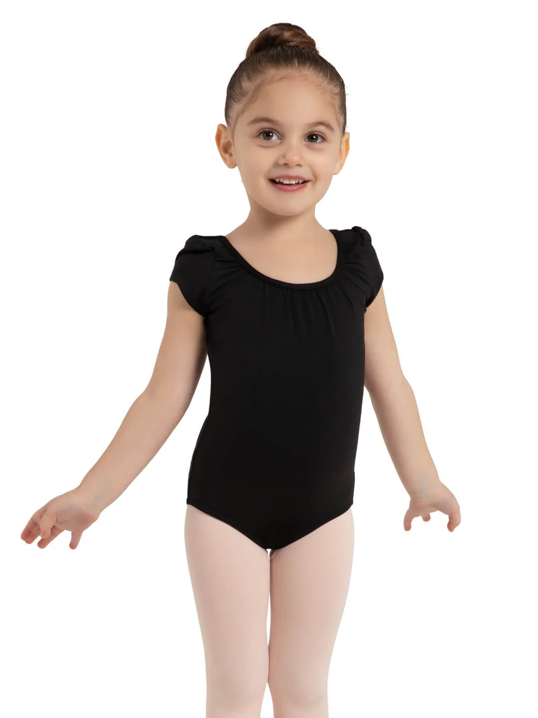 Step into the spotlight with the Horizon Leotard! Made of a comfortable polyester and spandex blend that provides flexibility and ease of movement during practice or performances. This leotard’s cap sleeve design is a total head-turner, featuring elegant gathers at the neckline and sleeve. The scoop neckline and scoop back create a classic look that’s flattering on all little dancers. Featuring a mesh overlay back panel that adds a unique and eye-catching element to the design. All colours are fully front-lined, providing extra comfort and coverage during wear, while the dyed-to-match mesh makes sure you look polished from head to toe. Pair with the Sky Skirt or Sunburst Short to complete the look.