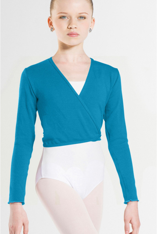 This classic knitted full-sleeved wrap-around top secures with adjustable self-ties for a snug fit. This is a must-have piece in the studio: layer the wrap-around top over your favorite leotard before you warm up. Our soft knitted fabric delivers maximum comfort and a perfect fit.