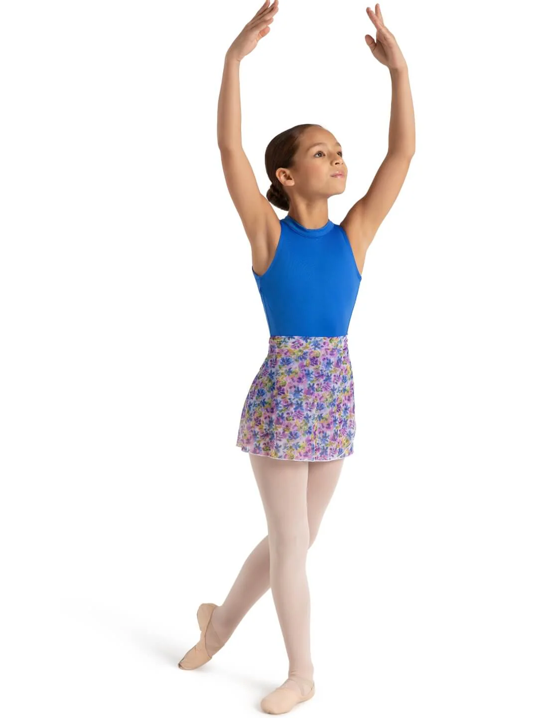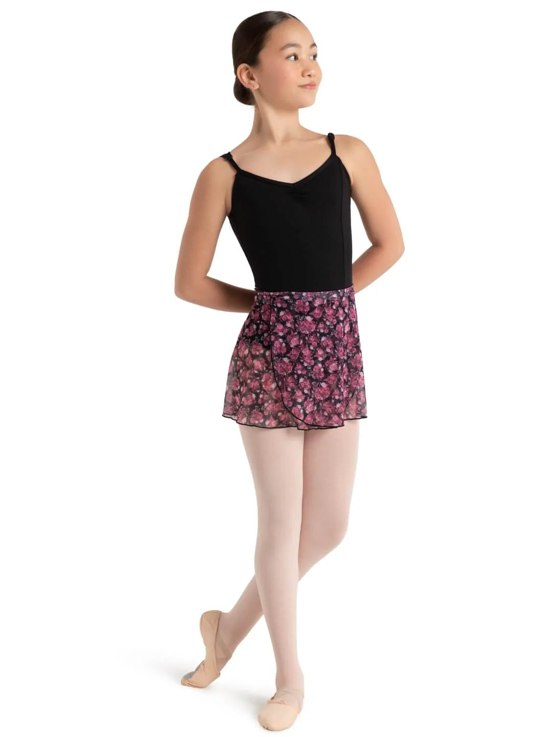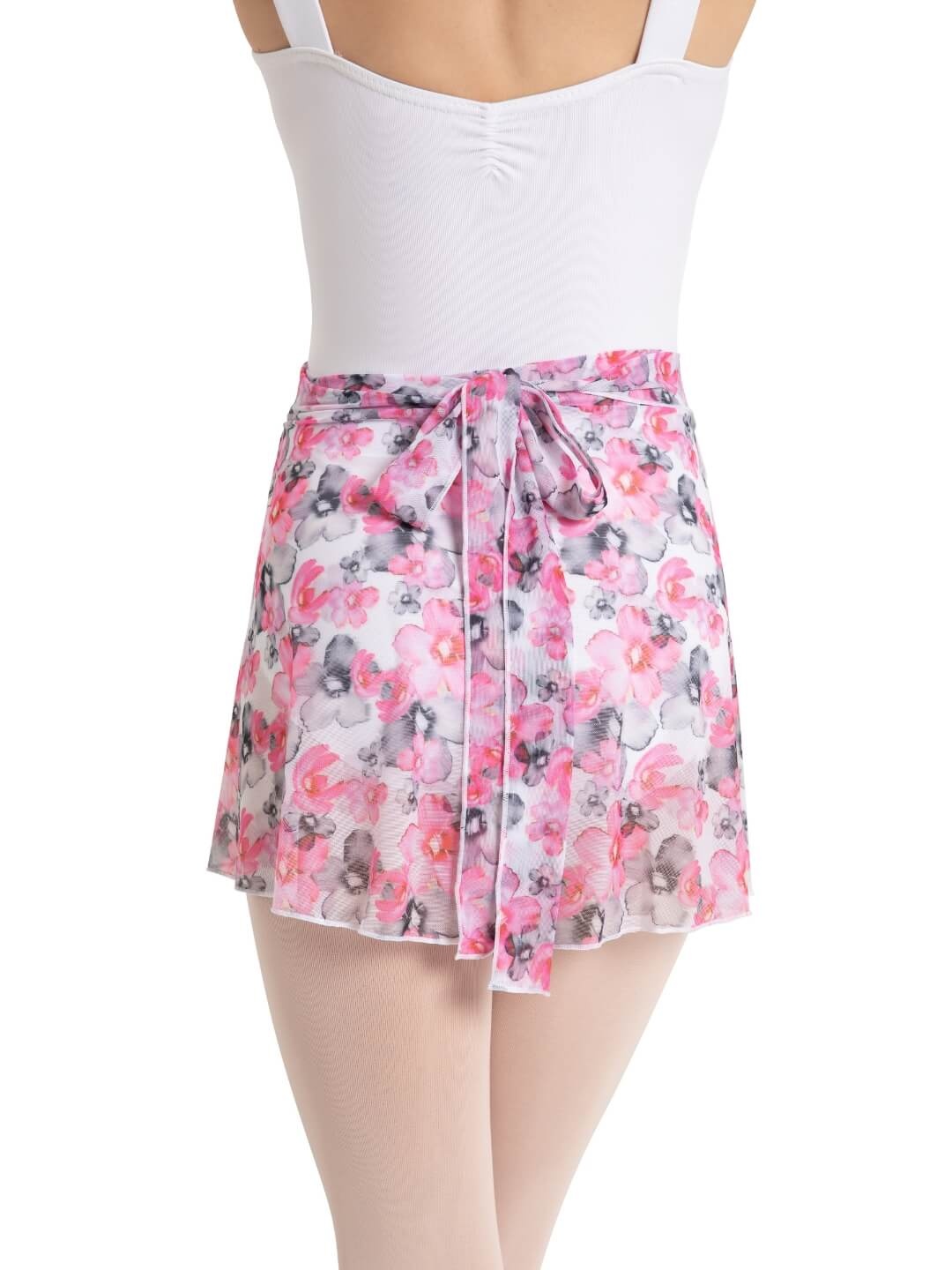 Made of a flowy nylon and spandex blend, the Printed Mesh Wrap Skirt features ties made of a soft, double-layered mesh that sits comfortably above the hips, ensuring a secure fit that won’t slip or move during classes or performances. The flowing design boasts a stunning flowered pattern that is perfect for creating a graceful and elegant look, making it ideal for ballet, contemporary, or lyrical dance styles. Pair with your favorite leotard to complete your own unique look.